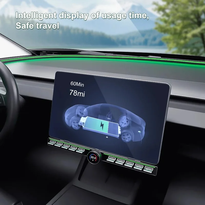 The Tesla V2L Discharger is a sleek and portable power solution. Its gray exterior and sturdy carrying strap make it easy to take anywhere. The black charger connects seamlessly to the power bank, providing a clean and organized look. Overall, it's a great addition to my car accessories.